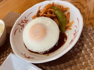お月見ハンバーグはデミグラスソースのハンバーグに
