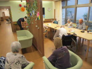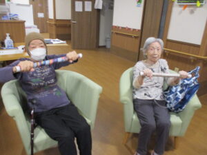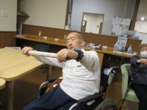 本日は運動レクリエーションの一環として、ショートステイのABユニットで棒を使用した集団体操を行いました。