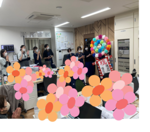 パーティー大好きな医務課のKさんを中心に、手作りのグッズでサプライズ!