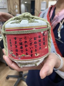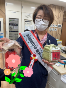 医務課の皆さんが、医務課の長でもある副施設長の還暦のお祝いを行いました。