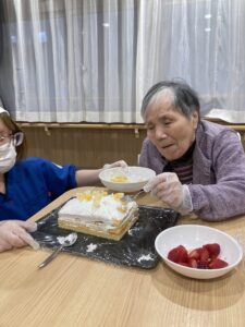 今日はクリスマス♫ということで午後からクリスマスケーキ作りを行いました🎂✨