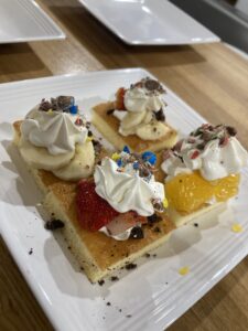 ケーキを重ねて豪華に仕上げたユニットもあれば、召し上がりやすいように四角にカットし、一つひとつにトッピングをしてデコレーションするなど、方法はさまざま♪