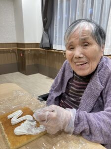 本日は利用者様・職員と一緒にクリスマスケーキを作りました。