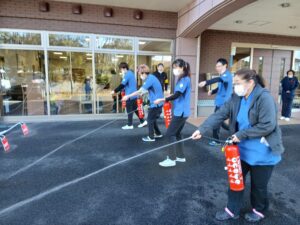 他のユニットから応援に駆けつけた職員と力を合わせて、無事避難完了。