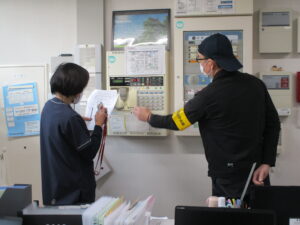 その後、受信盤や緊急放送設備、補助散水栓の説明を受け、