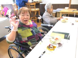 パンケーキは、ご利用者様にデザートや生クリームなどをお好きなようにトッピングしてもらいました💕