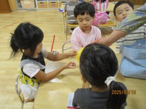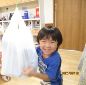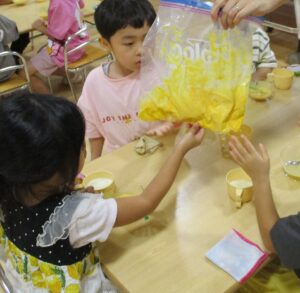 子ども達にとっては、ビニール袋を使用して作る作業の方が新鮮で楽しかったようです🤩🎵