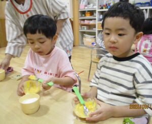 まんぼうぐみは、同じ材料を使い2通りのやり方でのアイスづくりに挑戦‼️