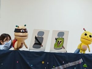 信号機や横断歩道の渡り方、車に乗る時のお約束など、人形劇を見ながらのお勉強でした🪆