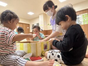 少しずつ遊びのイメージも広がり友だちや先生と一緒に