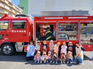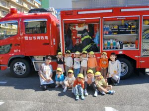 憧れの消防士さんと会えて嬉しそうな子ども達でした🎶