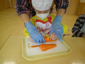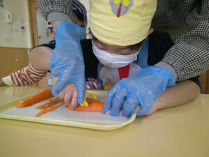 初めてピーラーを使い人参の皮むきをします🥕