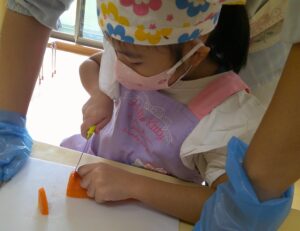 ドキドキ怖がる子もいましたが、慎重に皮をむくことができました💮