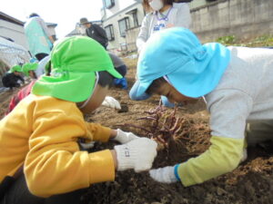 みんなで協力して土を掘り、サツマイモの収穫ができました💕