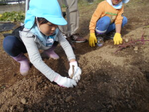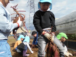 鹿野なないろ保育園のたいよう組さんと合同で、サツマイモ堀りを行ないました🍠