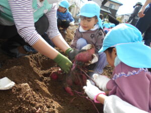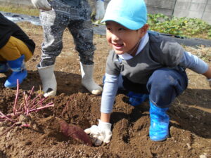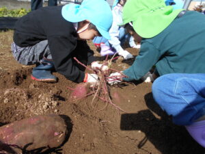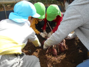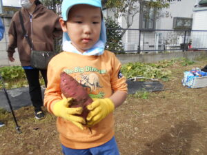 みんなで協力して土を掘り、サツマイモの収穫ができました💕