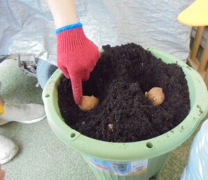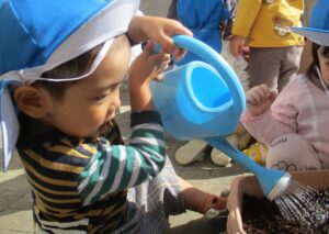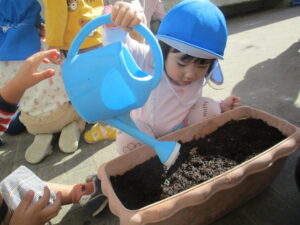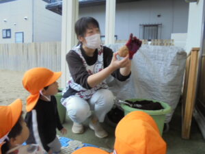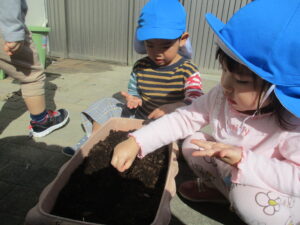 ぺんぎん組でじゃがいも🥔、りす組ではつか大根を植えました💕