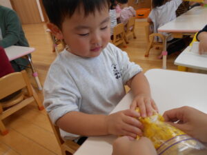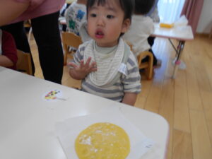 手でコネコネしながら作ることを伝えると、やる気満々の顔に😌👍