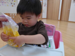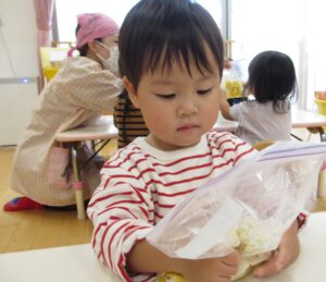 手でコネコネしながら作ることを伝えると、やる気満々の顔に😌👍