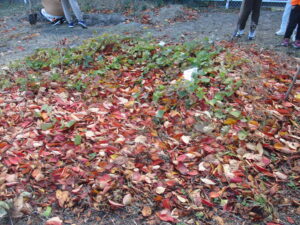 畑にはきれいに色づいた葉っぱがたくさん舞い落ちており、