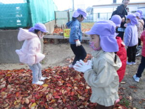 くまなく探したりしながら秋の体験を満喫していた子ども達です。