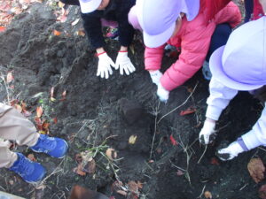 芋ほりは夢中になって土を掘ったり、まだ土の中に芋はあるかな❓と