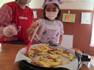 翌日、芋ほりで取ってきたおいもはクッキングして美味しく食べました🎵