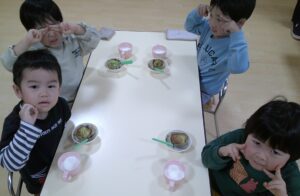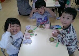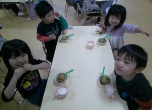「おいしい‼️」「抹茶みたいだね🍵」とぺろりと完食しました‼️