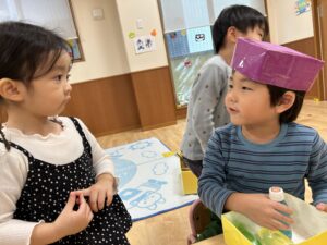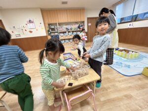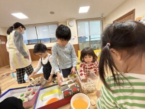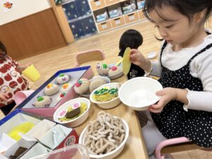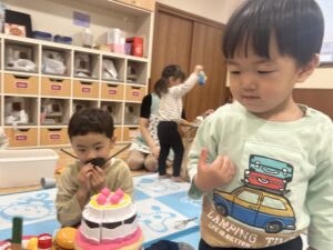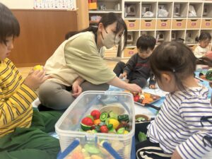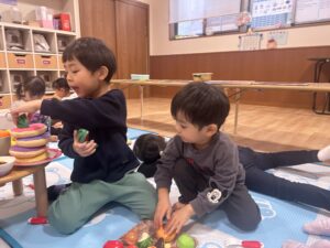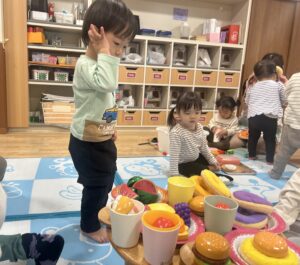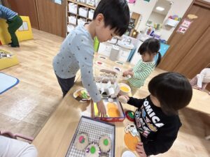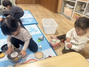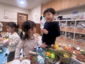 お料理作りやお店屋さんごっこを通して、少しずつ関わりも増えてきました💫