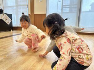 くじらぐみのお兄さん、お姉さんを見て「ぼくだって(わたしだって)できるよ」と挑戦‼️