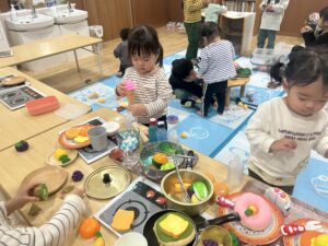 お料理作りやお店屋さんごっこを通して、少しずつ関わりも増えてきました💫