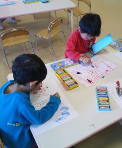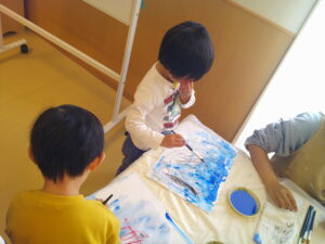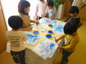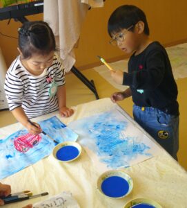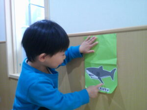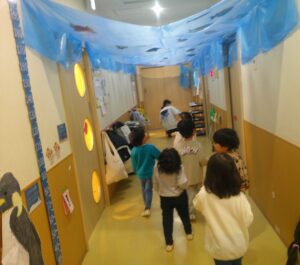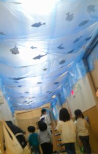 「水族館ごっこ」おさかなの下を通っているよ🐟🐠