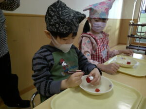 発表会も終わり、クリスマスを待つのみの子ども達は大好きな食育を行いました🌞