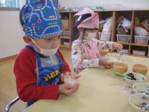 12/23日に、ぱんだ組でおにぎり作りをしました🍙✨