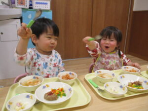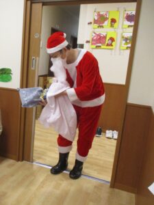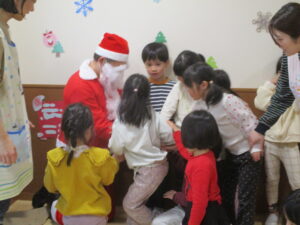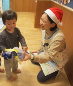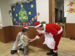 当日、0,1,2歳児はサンタさん登場にドキドキする姿もありましたが、