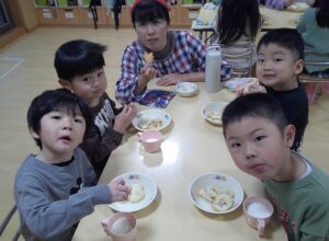 楽しいクッキングを行い、「クリスマスっていいね🧡」と嬉しそうな子ども達でした😊