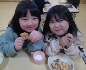 給食室で焼いてもらい、おやつの時間にみんなで「メリークリスマス‼️」と食べました🎄
