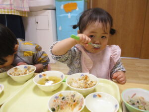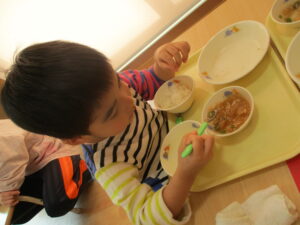 「かぶはやわらかいね」「大根のほうがすき」など話題にしながら食べていましたよ。