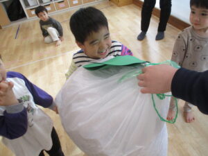 「おおきなかぶ」を読んでから、おおきなかぶごっこをしました。