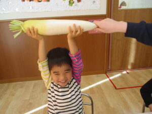 まずはおおきなかぶごっこで、みんなで協力してかぶを収穫しました❗