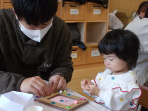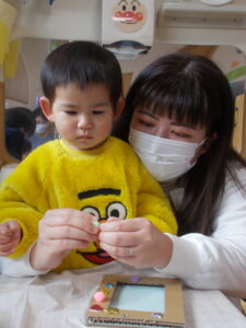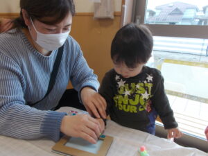 お父さんやお母さんと製作やふれあい遊びを通して、次第に笑顔になっていきました😆✨