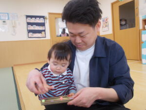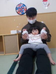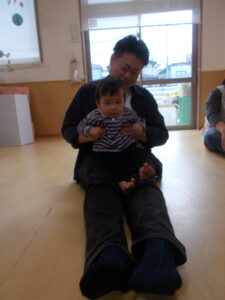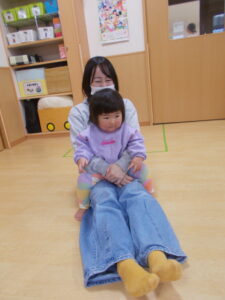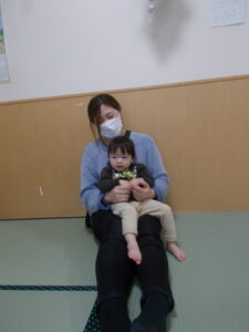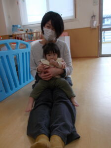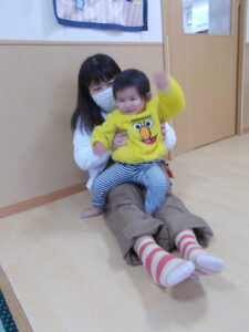 ふれあい遊びではお父さん、お母さんの膝に座ってご満悦の子ども達🩷