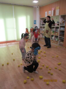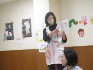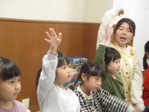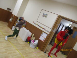 由来やクイズをした後にクラスに分かれ鬼退治の練習👊