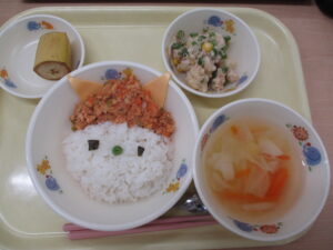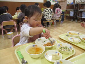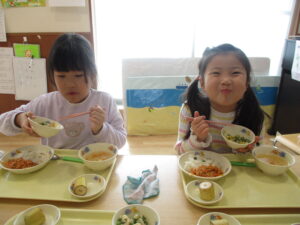 給食やおやつは行事食メニュー、みんな喜んでモリモリ食べていましたよ🍚