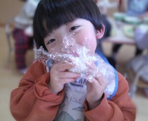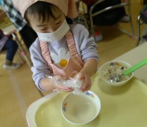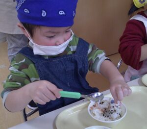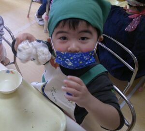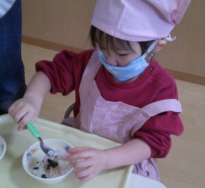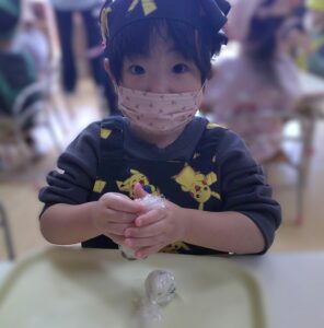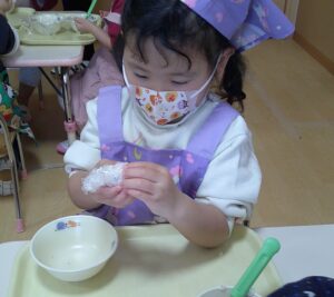 2月9日(月)つき組で食育「ラップおにぎりづくり」をしました🍙