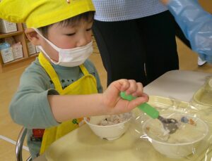 クッキングをするのは初めてのつき組さん。