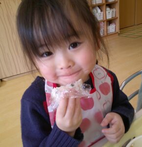 おにぎりが完成すると自分で作ったものを食べられる体験に喜んでいました😄