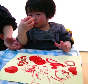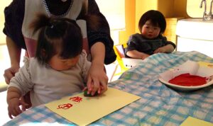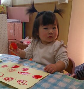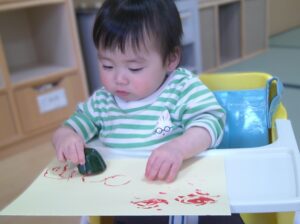 見本を見せると、上手に真似てペタペタ楽しんでいました🎵