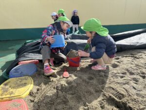 縄跳び、鬼ごっこ、かくれんぼ、砂遊びなど、子ども達が好きな遊びを選び、