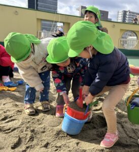 縄跳び、鬼ごっこ、かくれんぼ、砂遊びなど、子ども達が好きな遊びを選び、